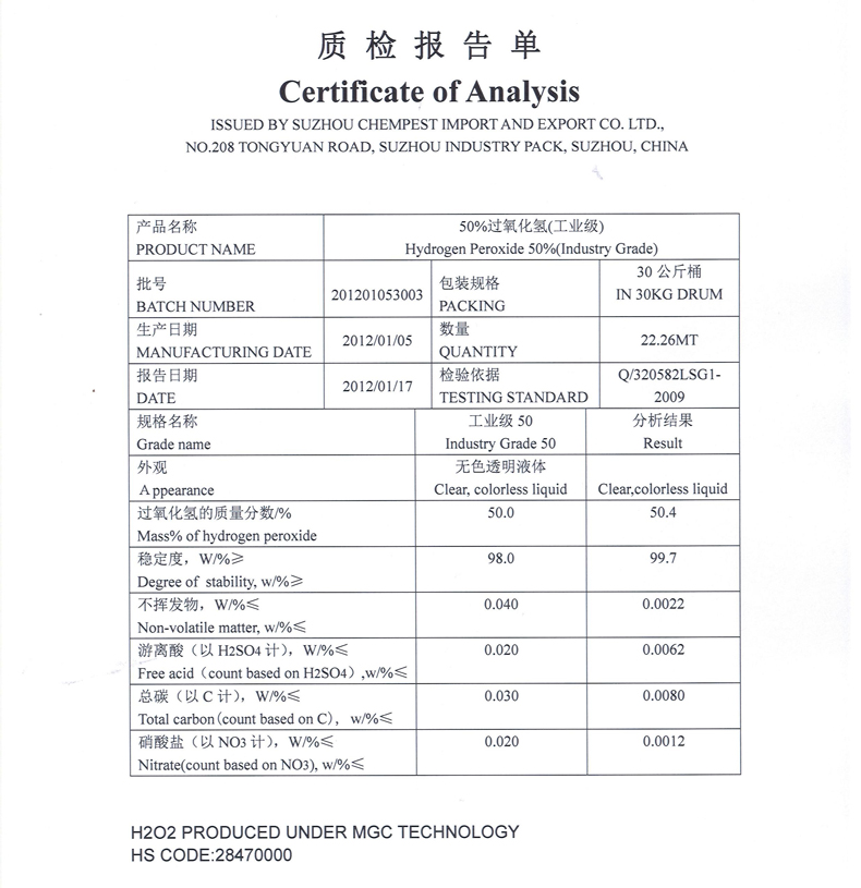 Name:HYDROGEN PEROXIDE 35%(INDUSTRY GRADE)